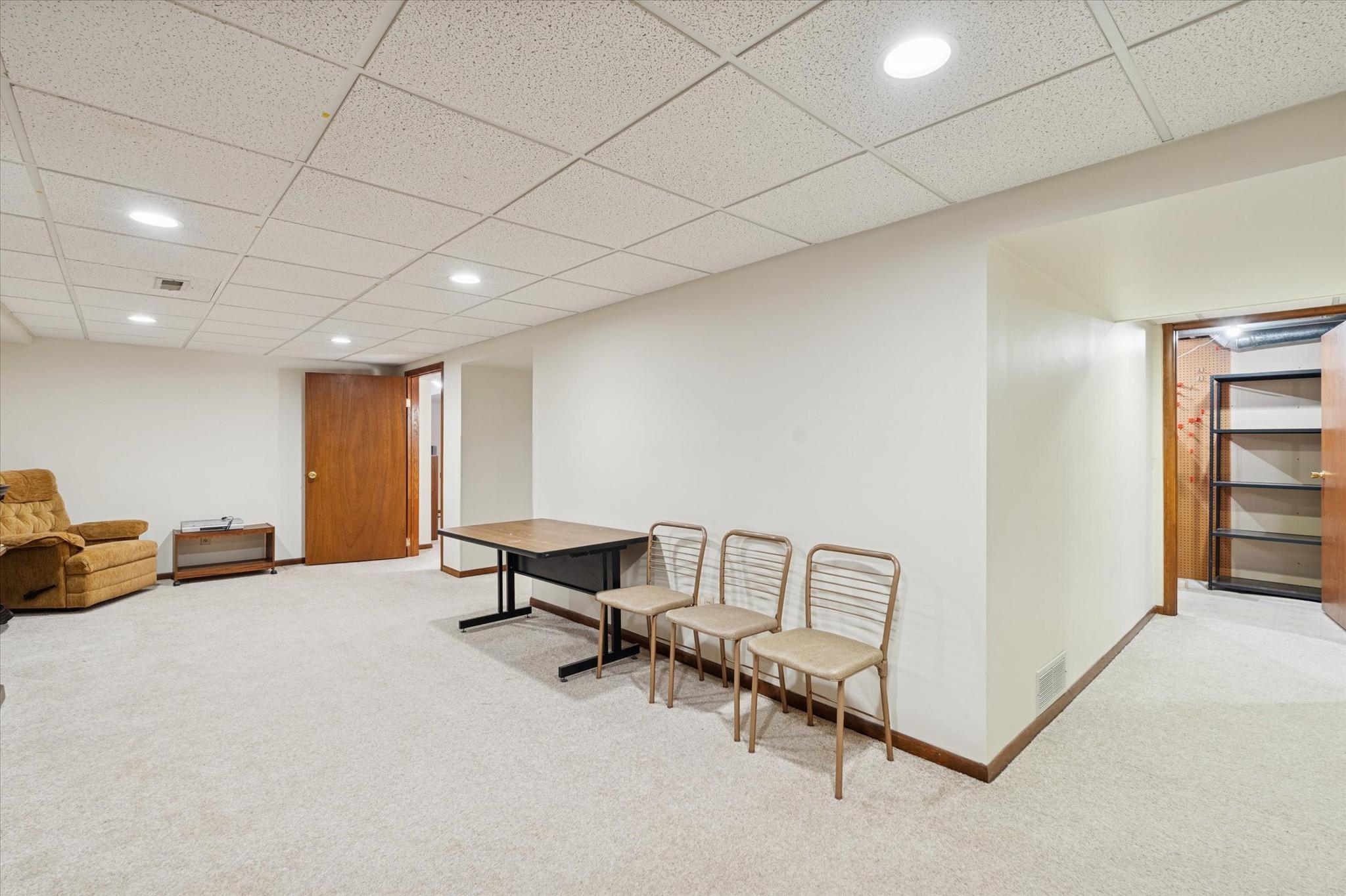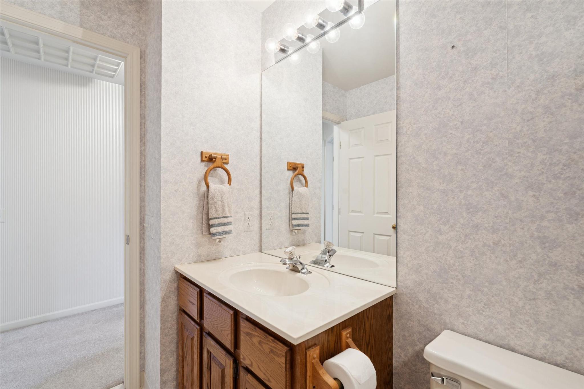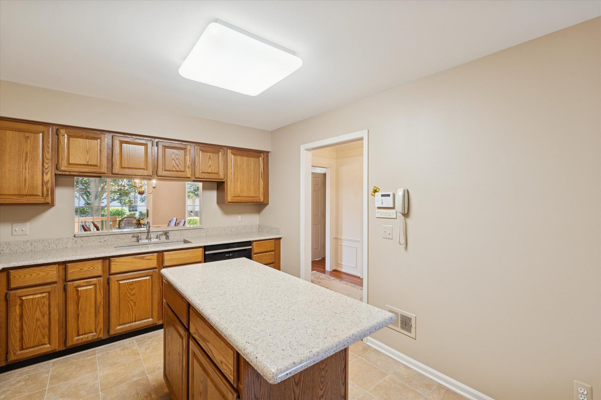 Sunlight fills the bright and open main level, featuring a large great room with picture windows overlooking the landscaped grounds and glimpses of the fairway beyond. The adjoining dining room provides space for gatherings and flows naturally into a well-sized kitchen with ample cabinetry and workspace, ready for your design vision. The layout feels both traditional and flexible, ideal for everyday living and entertaining.