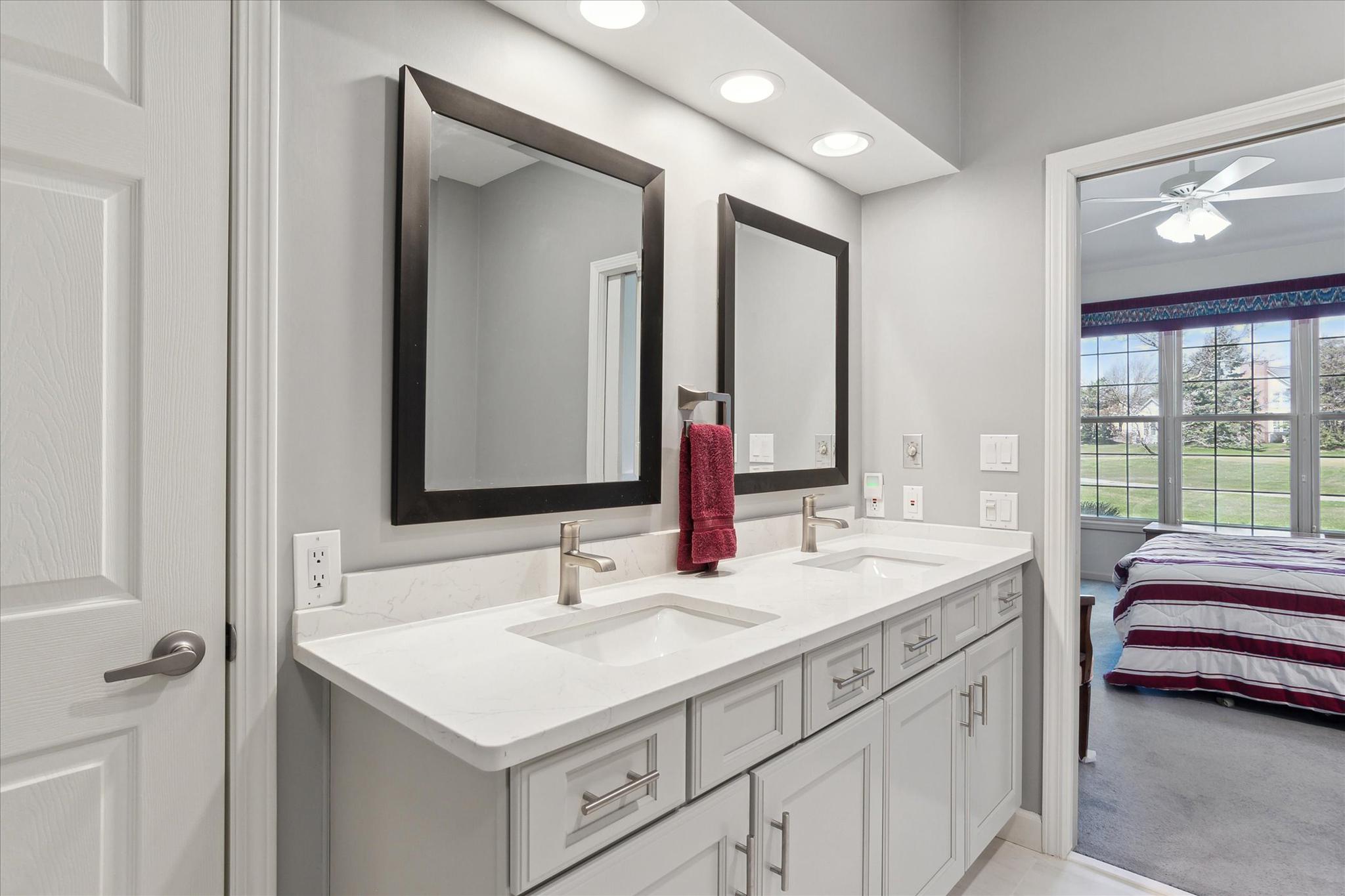 Wow! Revamped, refreshed and ready for you! The Open House is April 25th, from 5 to 7 pm! Phenomenal, end unit ranch with a beautiful and expansive golf course view! Super hard to find! This property is absolutely phenomenally priced, so there’s plenty of room for you to finish things off and make it your own, all while gaining instant equity! But that doesn’t mean that there haven’t been updates: Both bathrooms have updated vanities with shaker cabinets and quartz countertops, and the primary bath has an updated shower enclosure, plus recently installed, beautiful modern yet classic ceramic tile flooring. Kitchen has been updated with granite countertops and new appliances. New Anderson Doorwall and Marygrove Awning! Plus, the mechanicals have been replaced since the condo was built, as well. The owner has gotten the exterior walls of the basement insulated and drywalled, so it’s just ready for someone to come in and complete the process, and make it their own! This is truly a rare opportunity to get a condo for this price point, especially a ranch on the golf course, in Northville‘s Premier condominium community, Country Club Village of Northville! It is so extremely hard to find a ranch on the golf course that lists; the last two of this floor plan sold word of mouth without ever entering into the MLS or going online. Make sure to plan to attend the open house or schedule your private showing ASAP! You don’t want to miss out on this rare find!