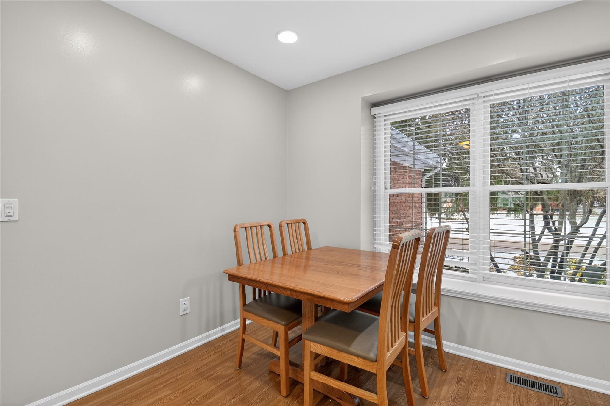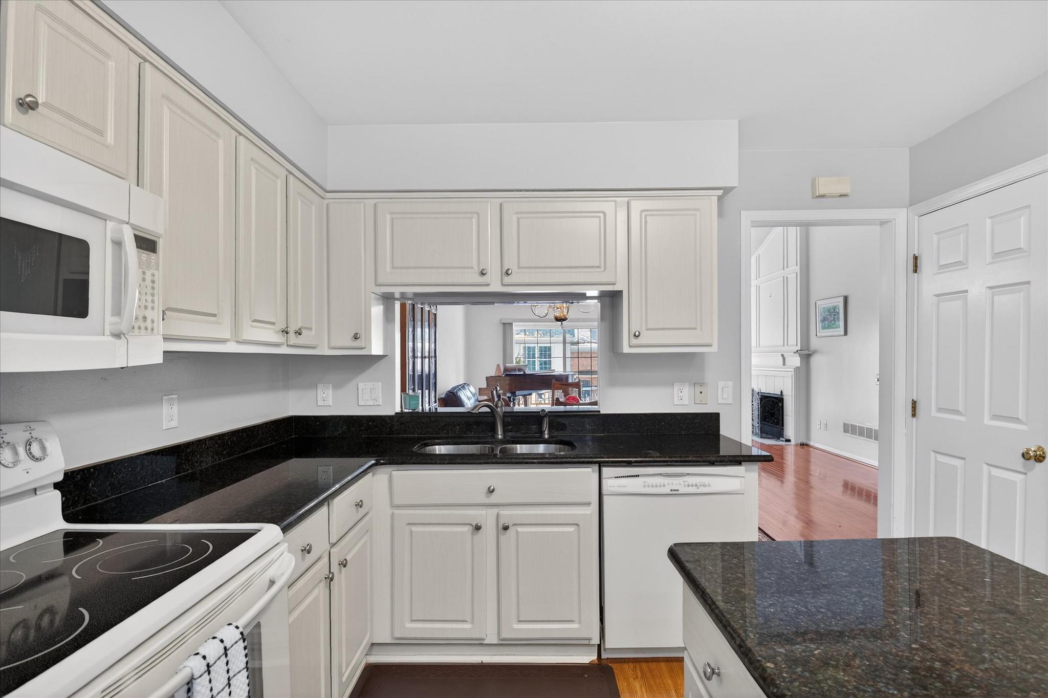 The thoughtfully designed layout features wood flooring and select newer windows that fill the home with natural light. Neutral décor creates a clean, move-in-ready feel, while the upgraded kitchen showcases granite countertops and refaced cabinets. The open flow between living, dining, and kitchen spaces makes everyday living and entertaining effortless.